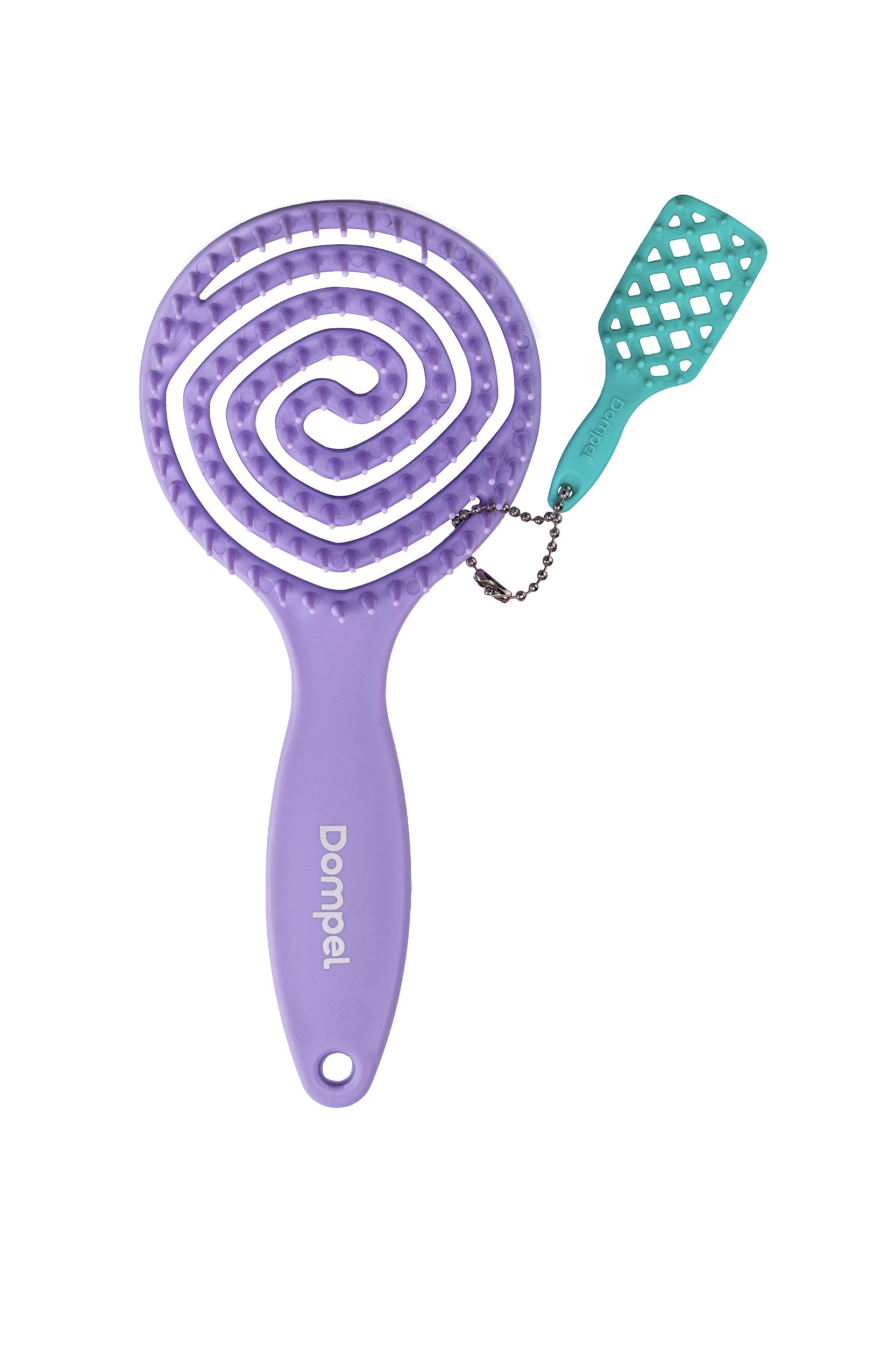 Escova de cabelo modelo Pirulito, indicada para cabelos cacheados e crespos. Seu design diferenciado facilita o desembaraço e auxilia na definição dos cachos, proporcionando mais controle e praticidade na finalização.